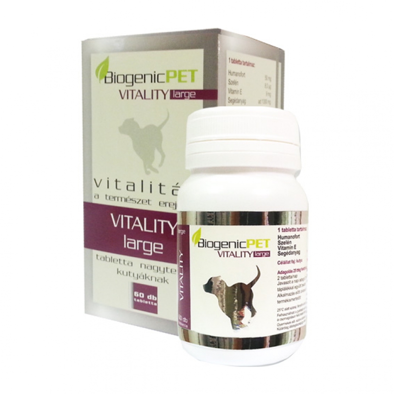 A természetes növekedési faktorok (Humanofort®) okozzák a különbséget. Számos kutatás bebizonyította, hogy a BiogenicPet Vitality tökéletes táplálék-kiegészítő a kutyák számára. A BiogenicPet Vitality természetes módon emeli a vitalitást, erős és egészséges immunrendszert biztosít, ami elengedhetetlenül szükséges a kutyák egészségéhez.