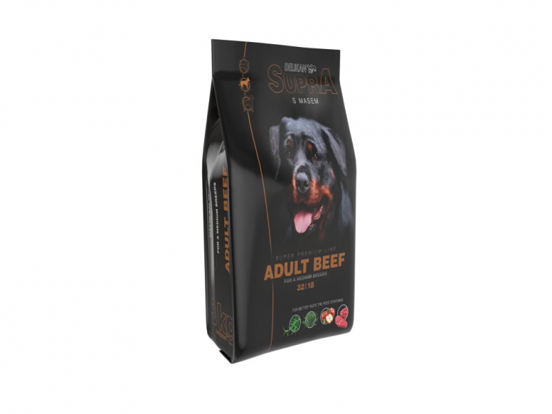 szárított marhahús (20%), friss marhahús (18%), szárított tepertő, szárított tengeri hal, fehér rizs, barna rizs, kukoricafehérje, marhahúszsír, kukoricadara, répapép, lazackivonat, szárítottgyümölcs-keverék, baromfimáj-kivonat, máriatövis, mojave jukka, hínár, kondroitin, glükozamin, probiotikus összetevők, ásványi anyagok és vitaminok