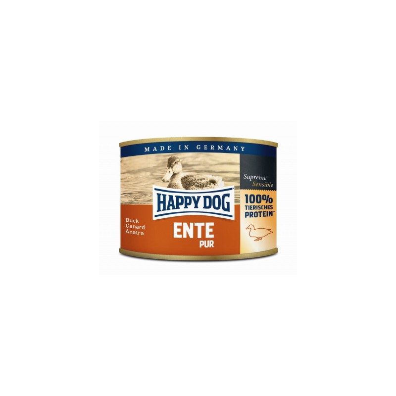 A Happy Dog kacsahúskonzerv kizárólag friss vágású kacsából készül, szója, növényi adalékok, valamint színezék és tartósítószerek hozzáadása nélkül. A kacsahúskonzerv csak egyetlen fehérjeforrást tartalmaz, ezért különösen alkalmas ételérzékenység és allergia esetén történő táplálásra. Nagyon ajánlott keverni a Happy Dog pelyhekkel!