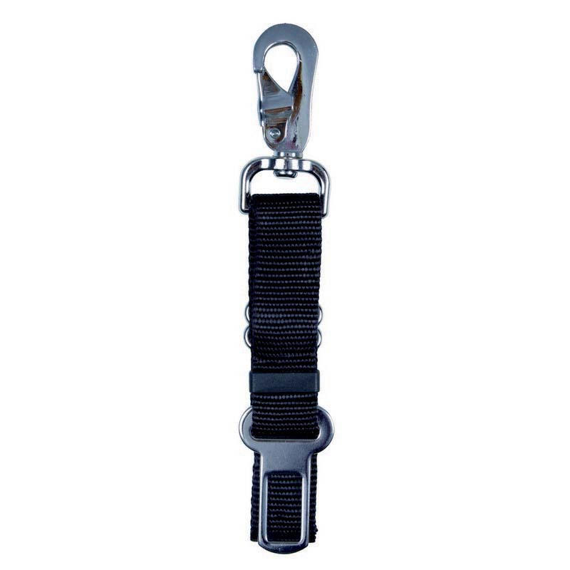 Trixie fekete színű biztonsági övhöz csatolható, kényelmesen méretre állítható rövid póráz karabinerrel.