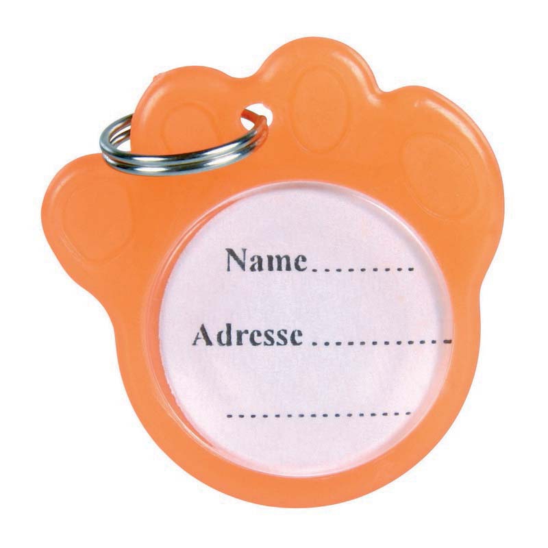 Műanyag, nyakörvhöz csatlakoztatható, tappancsalakú biléta, amelyre feljegyezhető a kutya neve az egyéb fontos adatok mellett.