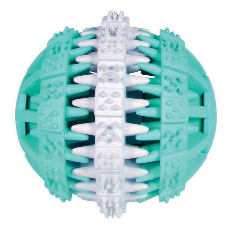 A Denta Fun labda természetes alapú gumiból készült, így nem okozhat gondot kedvencüének. A mentolos íz friss lehelletet biztosít, a felület kialakítása pedig masszírozza kutyája ínyét, és így segíti eltávolítani a lepedékeket és a fogkövet.