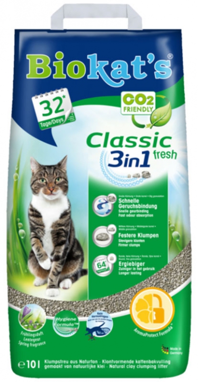 Biokats Classic Fresh 3 in 1 macskaalommacskaalom – Rendkívül higiénikus, abszolút természetes alapanyagú, kiváló szagsemlegesítő és összetapadó tulajdonságokkal rendelkező alom. Tökéletesen pormentes.
