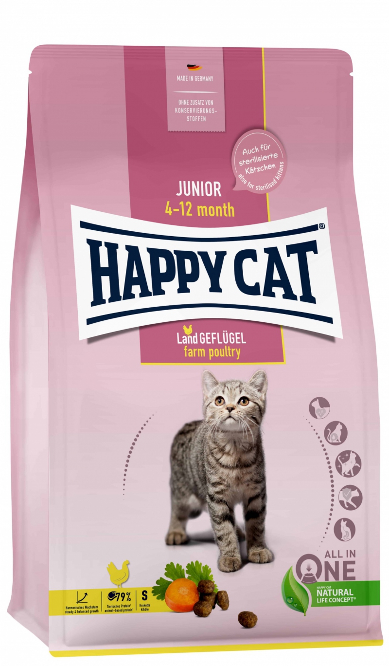 A Happy Cat Junior Geflügel ideális eledel érzékeny, fiatal macskáknak 4-12 hónapos korig.