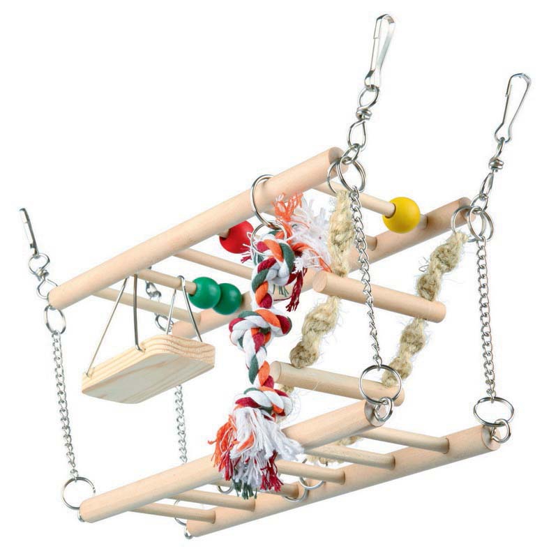 Kitűnő szórakozás és edzés rágcsálójának. Kétszintes, ketrecbe függeszthető, rengeteg lehetőséggel: létrával, kötéllel, golyókkal, függőkkel, mászókával, hogy kedvence remekül érezze magát.
